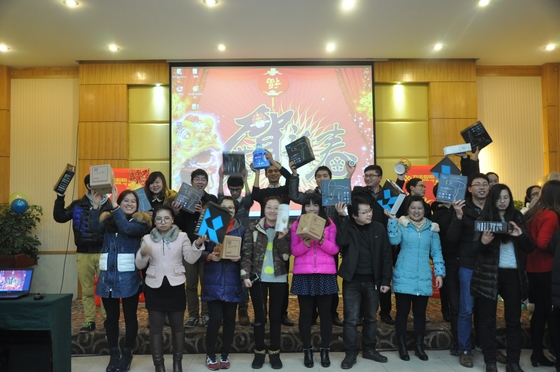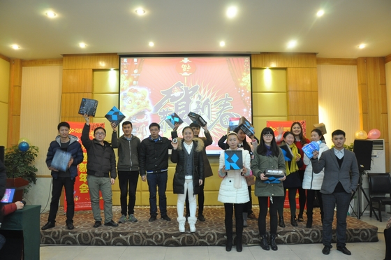 随着年会接近尾声,我们公平公正的评委组也选出了此次年会团队表演前三甲和个人表演前三甲,并由王总亲自颁奖。自此,长达一天的新年联欢会也落下了帷幕。每个人都抽到了属于自己的奖品,或大或小都已不重要,重要的是这种充满激情、充满活力的团队,已将大家带入了新的台阶。